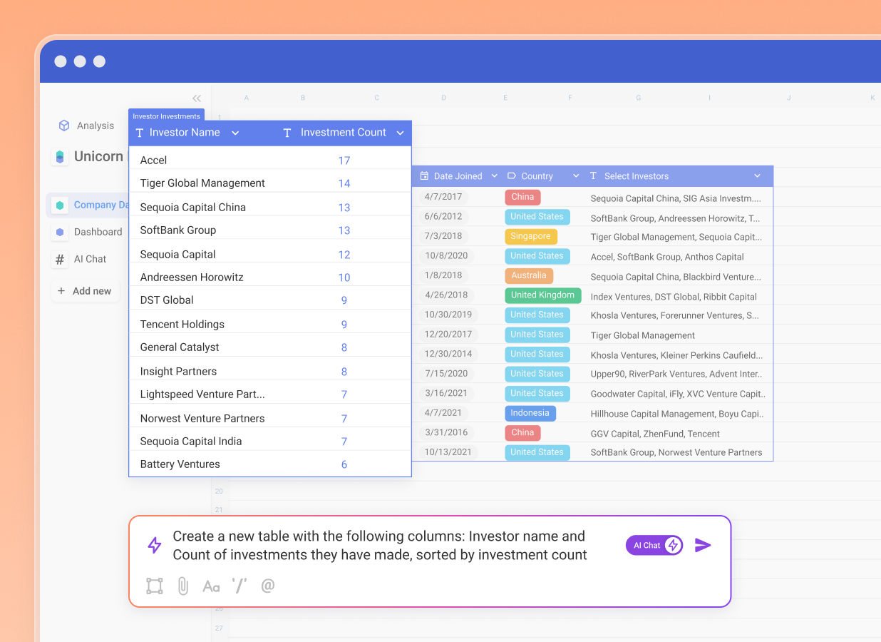 - Built core product features for an AI-first spreadsheet/BI web application: spreadsheet rendering engine, charts, tables, and other interactive visualization tools used by 100K+ total users.