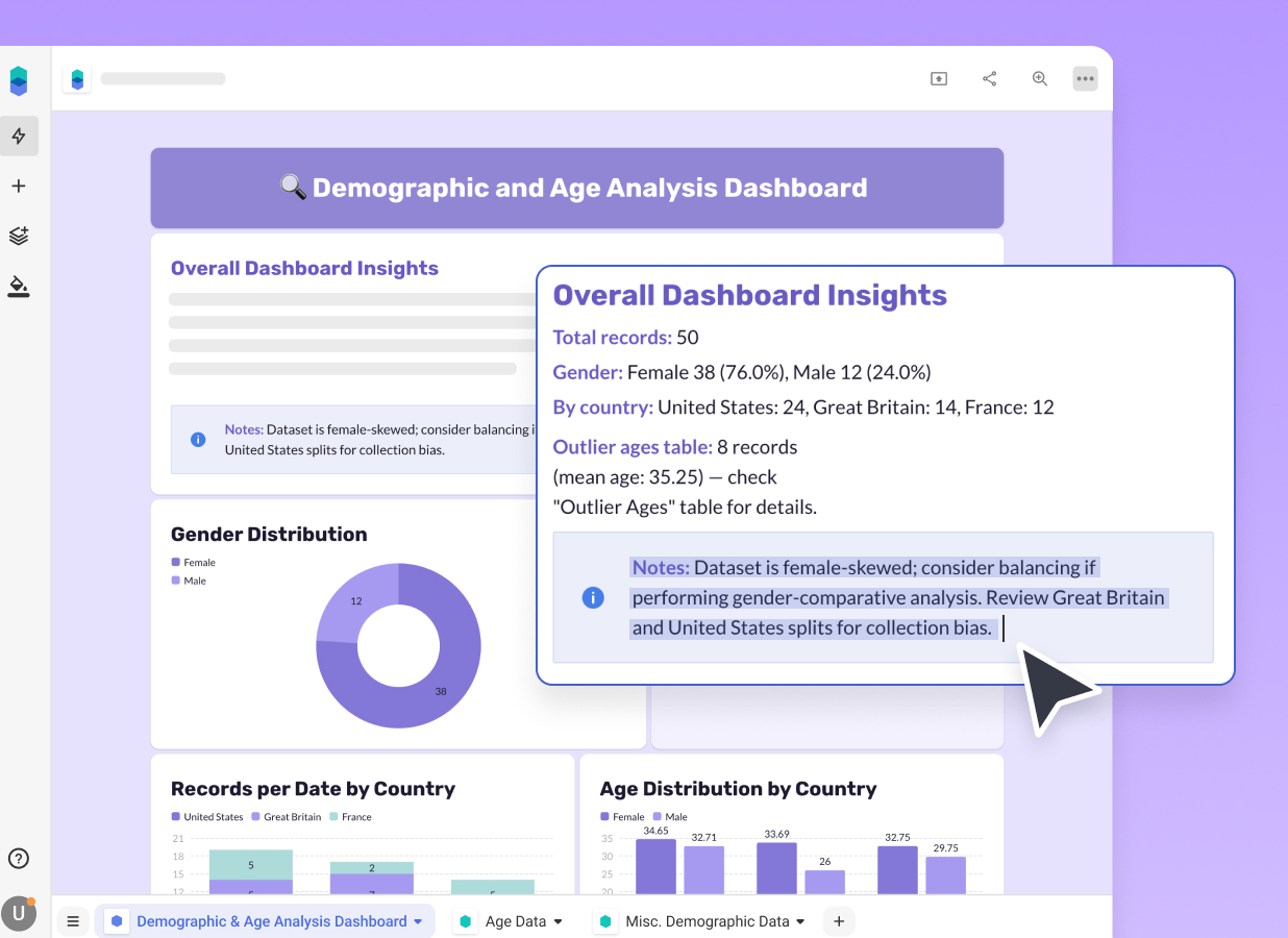 Bricks is the project I've been working on for the last 4 years. It started as a lightweight fast multi-user web spreadsheet, but soon became an AI-powered tool for generating dashboards. I designed LLM pipelines that clean up, organize and analyze user data, build a plan for the AI agents and generate beautiful dashboards with interactive insights, charts, and tables. Everything can be controlled and tuned by simply prompting AI, and all data is automatically updated from connected sources.